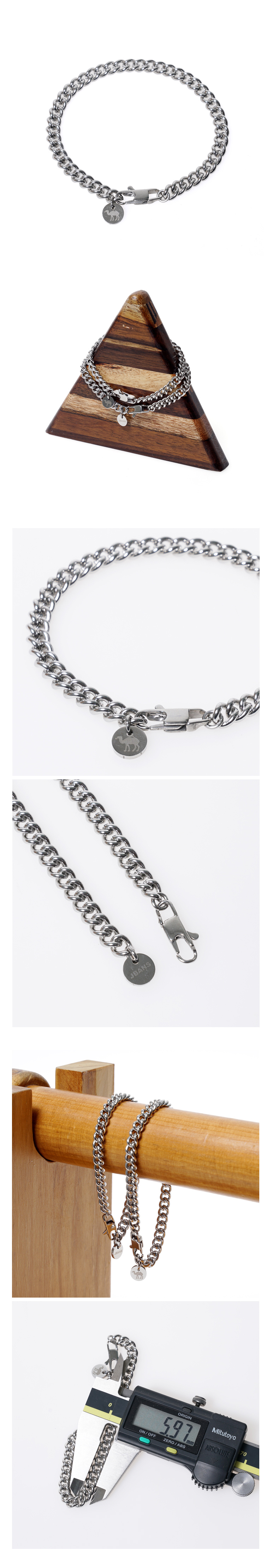 남녀공용 커플로 착용하기 좋은 슬림한 디자인의 써지컬스틸 체인팔찌입니다. 베이직한 라운드체인을 이용해 세련된 느낌의 팔찌로 디자인 되었습니다. 써지컬스틸로 만들어진 체인으로 변색이나 알러지 걱정을 줄였습니다. 심플하게 포인트로 착용하거나, 가죽이나 원석으로 만들어진 팔찌와 함께 착용해도 좋습니다. 사이즈는 주문제작 가능하며, 주문제작시 요청하시는 사이즈에 맞춰 팔찌 사이즈를 맞춰드리고 추가비용은 없습니다.