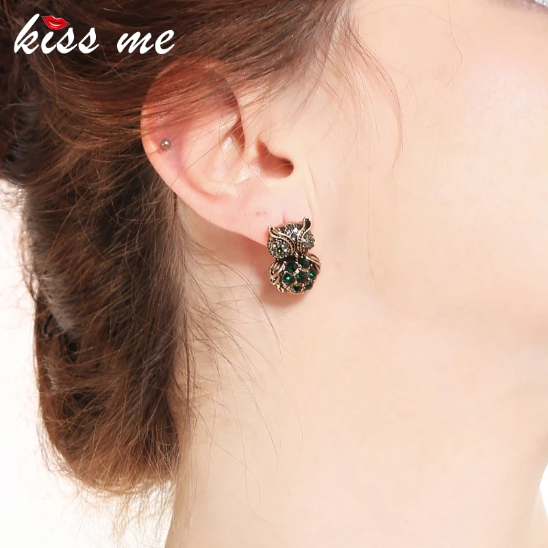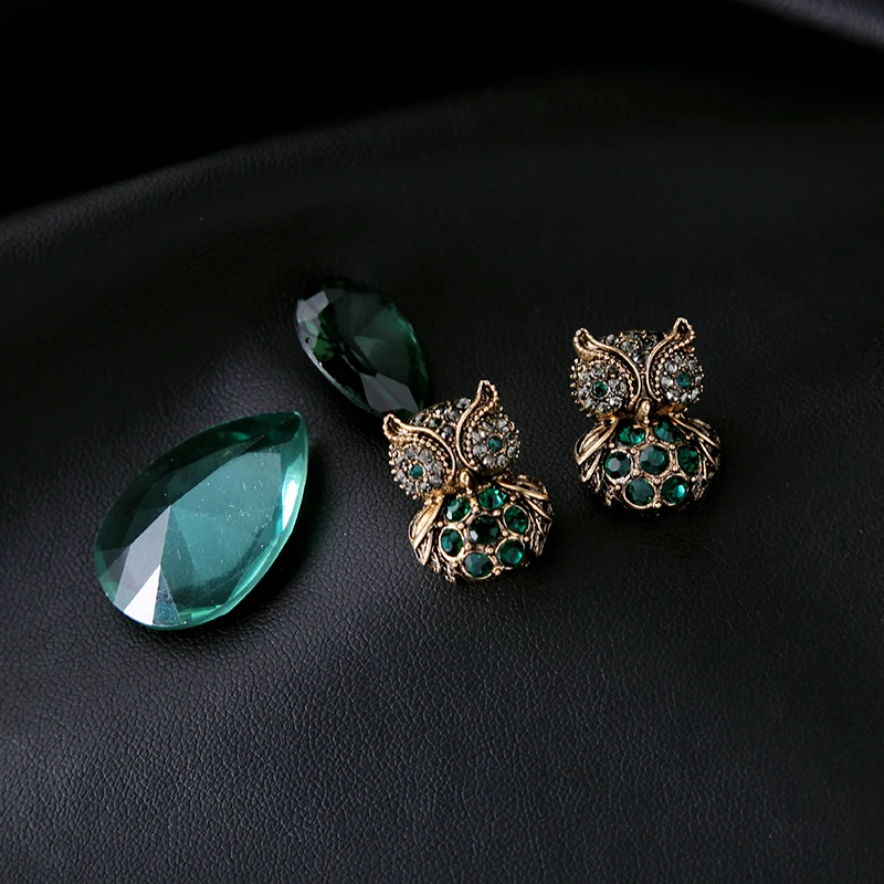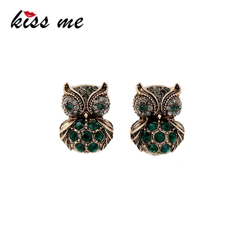 Production name ::KISS ME Green Crystal Owl Stud Earrings