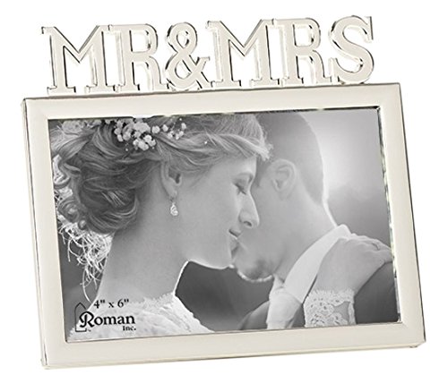 Roman 19636 The Caroline Collection Rectangle Shaped Mr. & Mrs. Photo Frame. Made of Lead Free Zinc Alloy