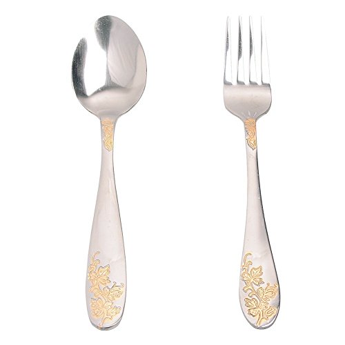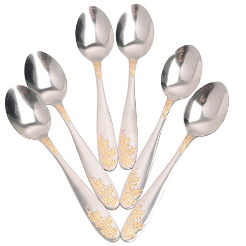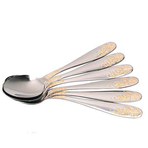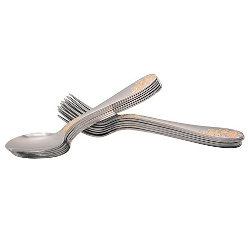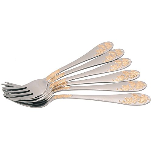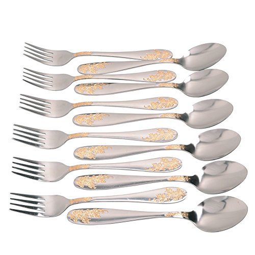 Aligle 12PCS Stainless Steel Fruit Forks and Dessert Spoon Carved Handle
