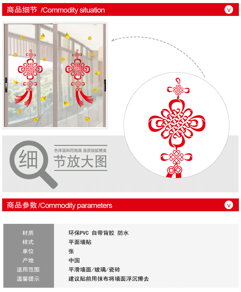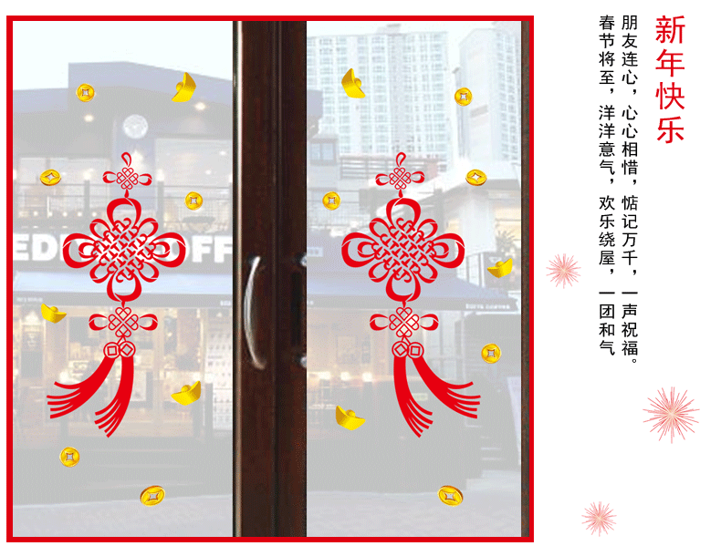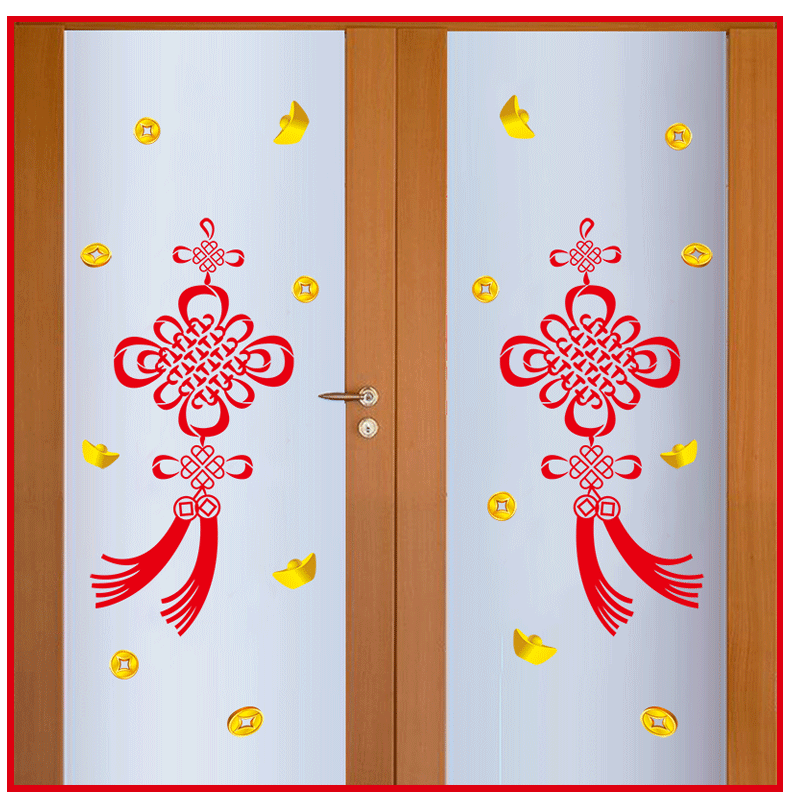 铜钱中国结喜庆过年贴纸装饰品橱窗窗花玻璃移门场景布置贴画墙贴