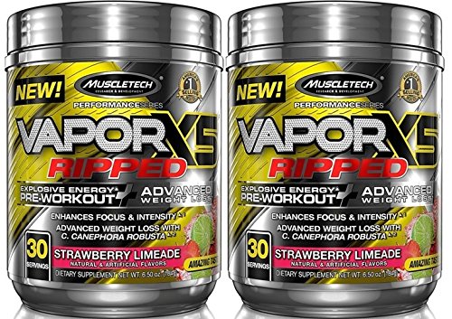 -. Title : MuscleTech VaporX5 Ripped Explosive Energy Preworkout 60 Servings (2x30 Serv) Strawberry Limeade