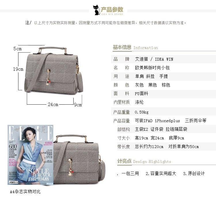 Length: 24cm / Height: 19cm / Depth: 9cm / Top Handle: 5cm