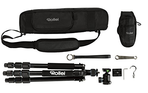 Rollei Stativ - Kompaktes Dreibein Aluminiumstativ inkl. Stativtasche, Schaumstoffgriff, Umbau zum Einbeinstativ moglich, Drehbare Mittelsaule - Arca Swiss kompatibel