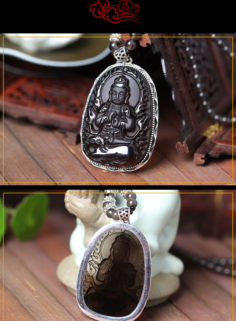 开光冰种黑曜石925银大日如来十二生肖属羊本命佛守护神吊坠