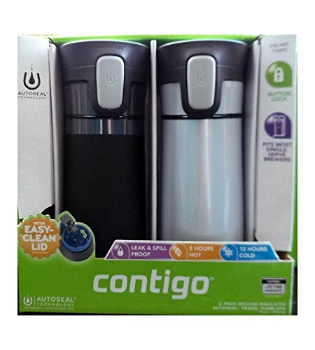 Take your favorite beverage along with you-wherever you go-without the risk of leaks or spills. The Contigo AUTOSEAL® Pinnacle Stainless Steel Travel Mugs - 14oz double wall stainless steel travel cup with patented Locking auto-seal lid. Press to sip. Release to seal. The lid automatically keeps your beverage from leaking or spilling. The tumbler holds up to 14 ounces of your favorite beverage and will fit most standard car cup holders. Its vacuum insulated technology keeps beverages hot for five hours and cold for twelve. Not intended for carbonated beverages or boiling liquids. Hand wash using non-abrasive cleaners. The lid is top Rack Dishwasher Safe - Easy Clean travel mug lid. Recommended to hand wash the body. (2 Pack 1 Stainless and 1 White) - Two Stainless Steel Auto Seal "Pinnacle" Stainless Locking Tumblers. 100% leak-proof. Those are pretty bold claims, but they are what AUTOSEAL® is all about. Need a leak-proof travel mug to use in the car? Need a spill-proof coffee mug to use at your desk? Need a travel mug that will keep your coffee hot for hours? How about all of the above? AUTOSEAL® has you covered. The Stainless Steel AUTOSEAL® Mug has a double wall and is vacuum-insulated, ensuring that your hot coffee or other beverages stay that way for hours.Feature