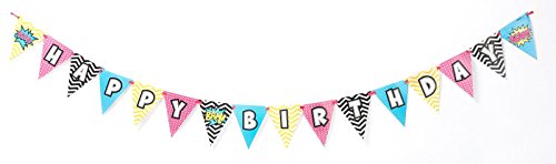 -. Feature : Includes (1) ribbon and (16) pennant flags. Measures 7' in length when fully assembled. / Add matching tableware, favors, accessories, or a party kit bundle to complete your superhero birthday party.