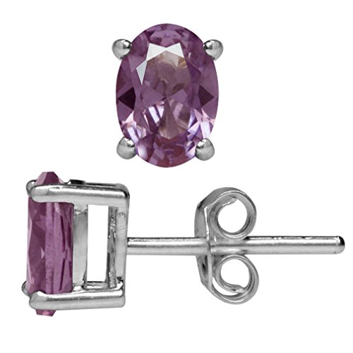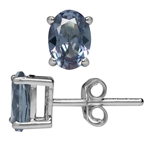 Simulated Color Change Alexandrite White Gold Plated 925 Sterling Silver Stud Earrings