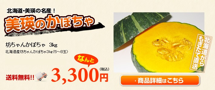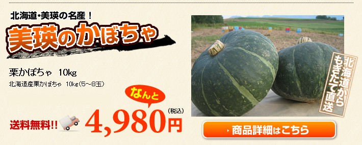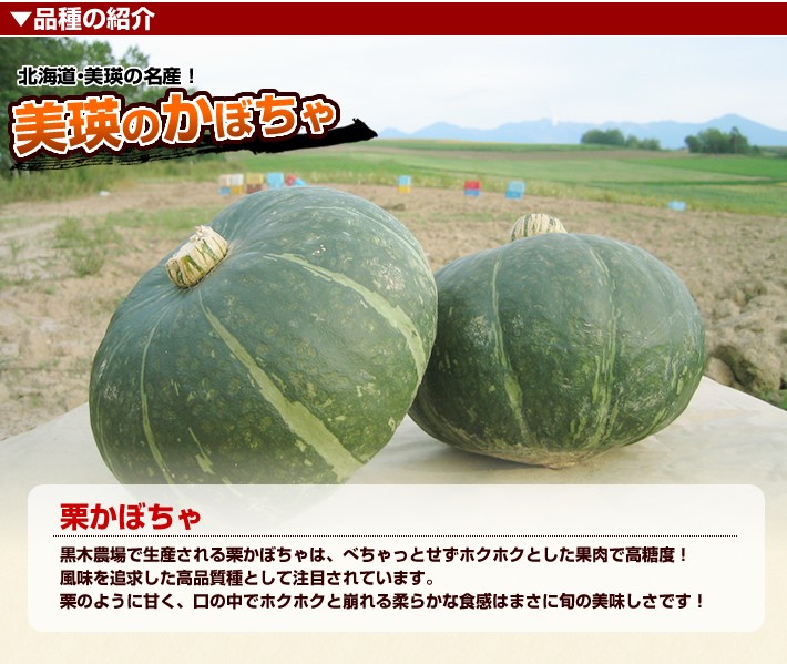 | 商品内容 | 北海道美瑛産栗かぼちゃ約10kg(約5~8玉) |