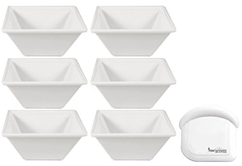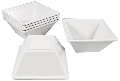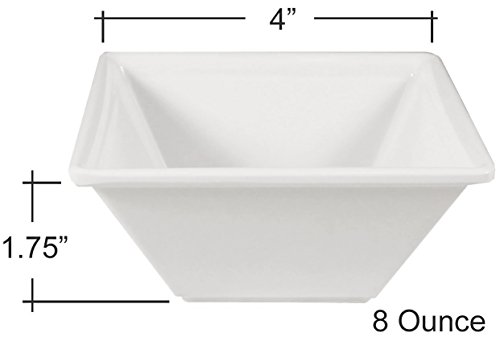 Square Melamine Bowls with Pan Scraper, 6-Pack, White (4 Inches, 8 Ounce)