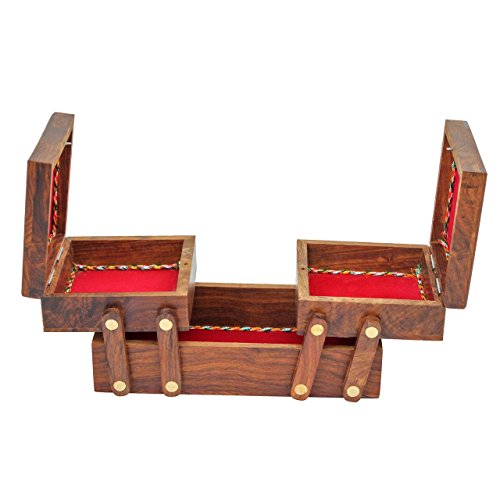 Craft Art India Handcrafted Sliding Wooden Decorative Jewellery Storage Box With Brass Embossing