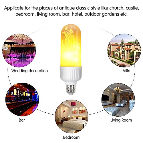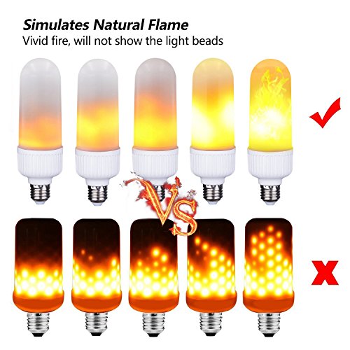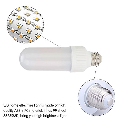 - ☀【 COOL AND ROMANTIC】--- Design patented flame light configuration E26 / E27 lamp, 99 LED lamp beads, 3W orange warm fire color decoration of your space, to provide you with a quiet, romantic and relaxed atmosphere.
