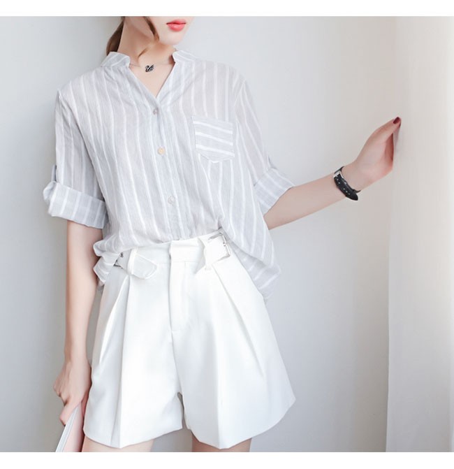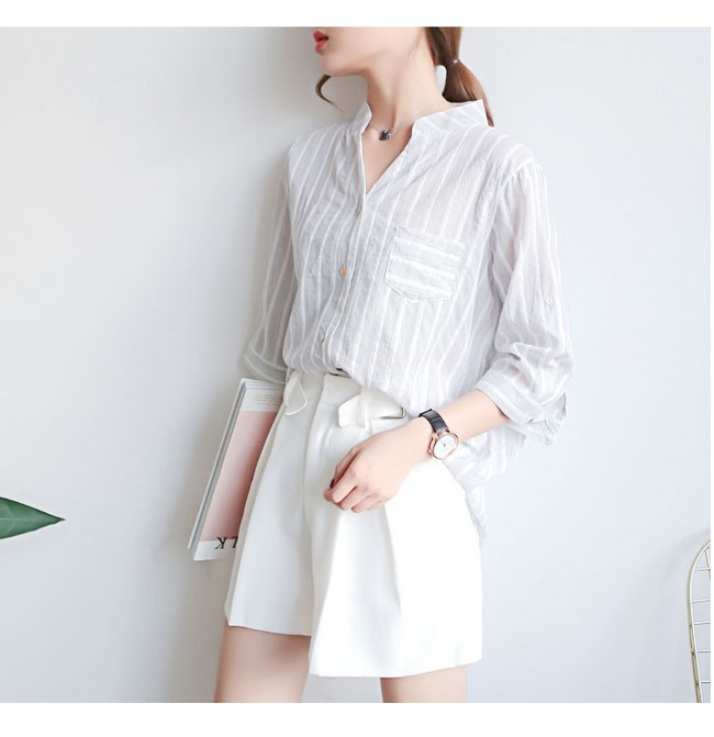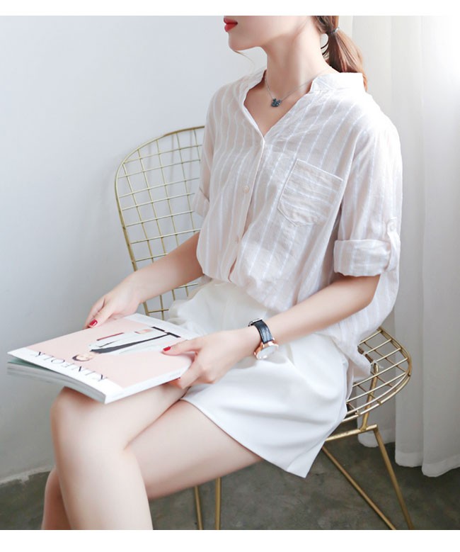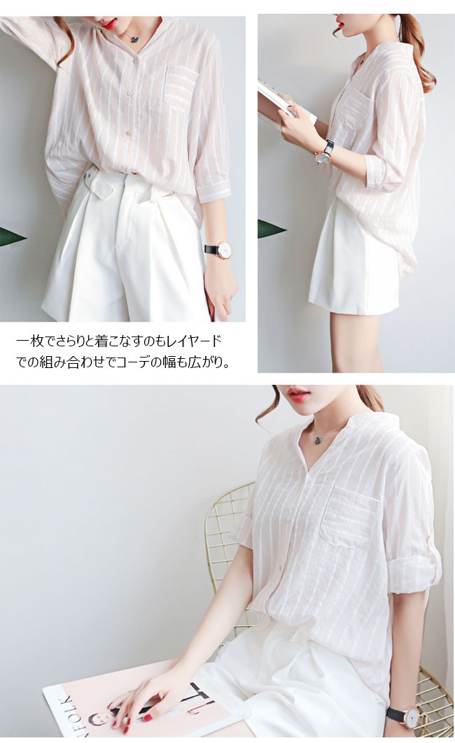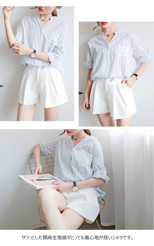 | 商品名 | リネンスキッパー 棉麻シャツ 棉麻ブラウス レディース リネントップス ストライブ柄 五分袖 ショート丈 大きいサイズ とろみシャツ 2017新作 |