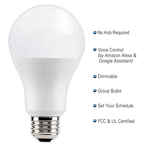 Lux 1050 A21 Smart Wi-Fi LED Dimmable Light Bulb, White, No Hub Needed,Compatible with Alexa and Google Assistant