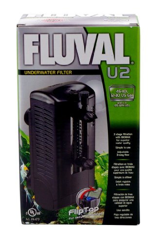 Fluval U2 Underwater Filter with three-stage filtration is ideal for use in fresh, marine or reptile environments. Stage 1 foam removes large particles. In stage 2, the poly/carbon cartridge traps fine debris, improves water clarity and removes impurities. In stage 3, BioMax provides optimal biological filtration efficiency.Feature