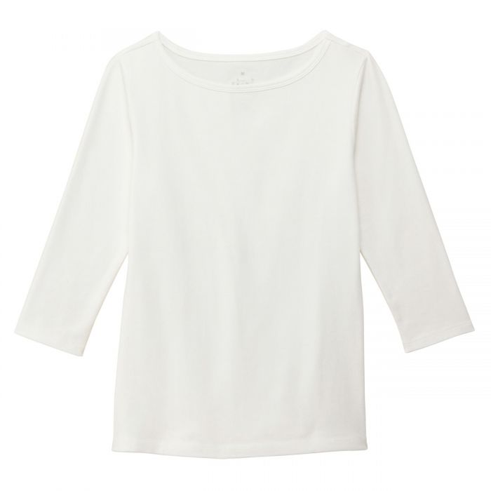 원본상품명: オガニックコットンストレッチボトネック七分袖Tシャツ 婦人Sオフ白SALE