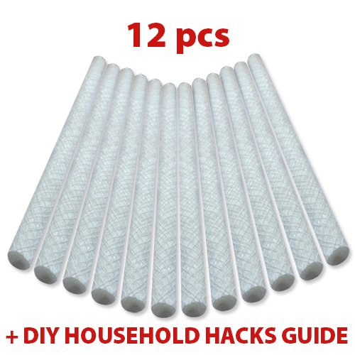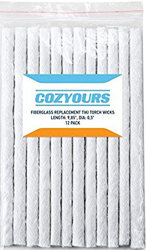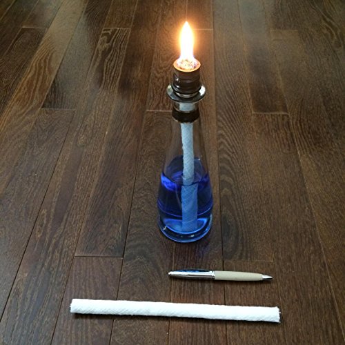 - ✅ Fiberglass Wicks. 12 pcs Round 9.85" (25 cm) Long + 3 E-BOOKS INCLUDED! Total Length is 118.2" (300 cm); Wick's Dia:0.5" (1,25cm); LARGE and EASY TO CUT; Are Well Woven, Can Be Trimmed to the size you want. No tape at end of each wick so there is no need to remove it!; WON'T SPLIT AFTER YOU CUT IT/POUR OIL; Fits Most Bamboo, Metal Torches, Wine & Beer bottle Tiki torches, Wine Bottle Tiki Torch Kit, DIY Oil lamps, Candle Rocks, Outdoor Patio Tiki torches