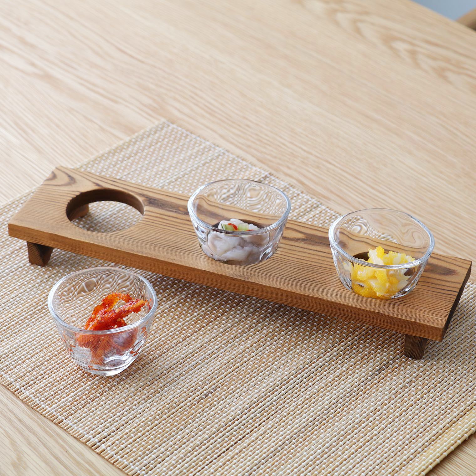 Glass set with wooden base