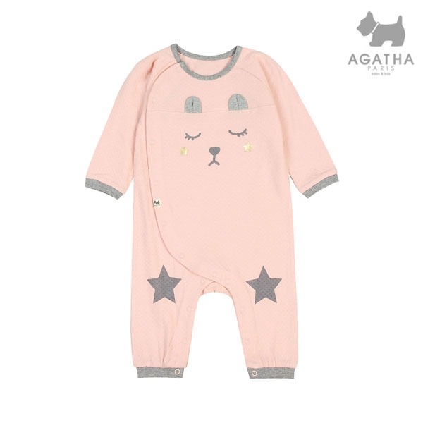 이중지 원단을 사용하여 보온성이 좋은 공용 상하세트로 얼굴 표정 나염과 무릎 별나염으로 포인트를 준 귀여운 아이템입니다.