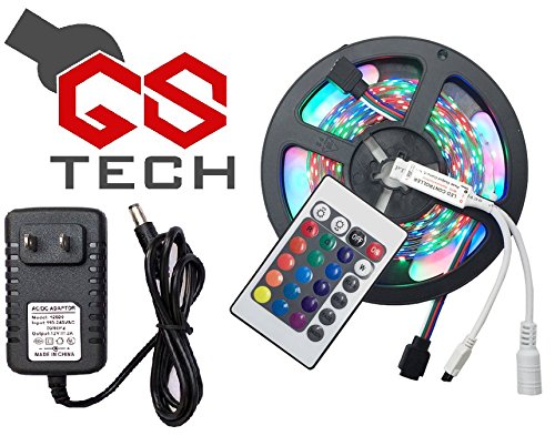 GS Tech 16.4 ft. LED Light Strip With Adhesive Tape Backing And 24 Button Infrared Remote – 300 LED’s - 16.4FT / 5M Strip - Multi-Color Changing Lighting Control for Indoor Use