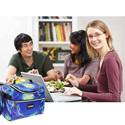 womens Lunch Bag Waterproof Lunch Tote Bag for Work Men Women Kids Zipper Closure, Handle Adjustable shoulder Strap (blue)