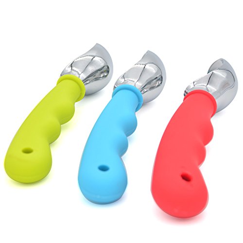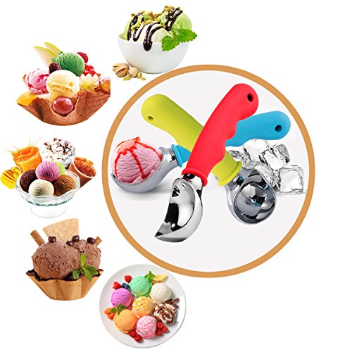 - 1. NON-SLIP,EASY TO HARD ICE CREAM - Rubber handle with Finger grooved provides a perfect non-slip grip while scooping. The ice-cream scoop allows for a firm grip while having a soft sense of touch.