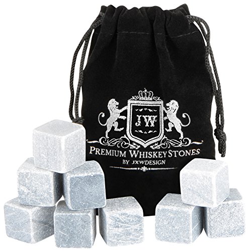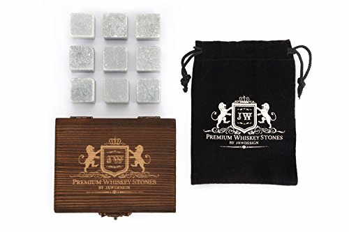 Product Description Chill your drinks without diluting it! Premium whiskey stones are known to hold temperatures for long durations and freeze much faster than regular ice cubes. Offered in a classy yet elegant packaging with a soft velvet bag carrying bag and a laser engraved wooden box. - Rinse whiskey rocks before use.