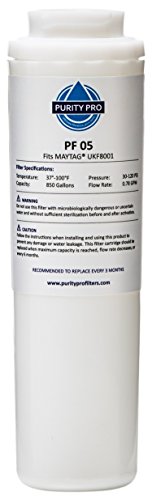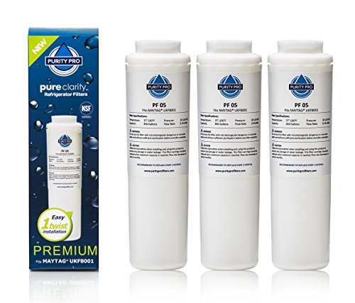 -. Brand : Purity Pro -. EAN : 5060388573386 -. Feature : Manufactured in South Korea, Guaranteed Quality and Filtration Performance! / 850 gallon capacity in average household environment X 3 / NSF 42 Certified for Quality Materials and Structural Integrity / 0.5 micron rating (nominal rating is 0.3 micron) / Made with Advanced Concentrated Carbon Technology for Enhanced Purity -. Label : Purity Pro -. Manufacturer : Purity Pro -. PackageQuantity : 3 -. ProductGroup : Kitchen -. ProductTypeName : KITCHEN -. Publisher : Purity Pro -. Studio : Purity Pro -. Title : 3 X Purity Pro PF05 Premium Refrigerator Water Filter for Maytag, Amana, UKF8001 KitchenAid, Bosch and Viking Models