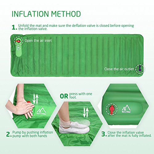 MANUAL INFLATION DESIGN: Designed with sponge inflation pump which can effectively use ambient air to inflate; simply close deflation valve and then open inflation valve, press with hands or stamp with one foot on the inflation pump for around 90 seconds to fully inflate