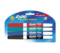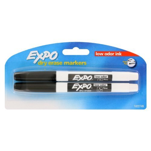 Bright, vivid, non-toxic ink is quick-drying, smear-proof, easy to see from a distance, and provides consistent color quality. Durable, fine point tip for thin, detailed lines. Erases cleanly and easily with a dry cloth or Expo eraser. Ink is specially formulated to be low-odor. Perfect for use in classrooms, small offices, and homes. Made in the USA Expo Low-Odor Dry Erase Markers, Fine Point, 4-Pack, Black.