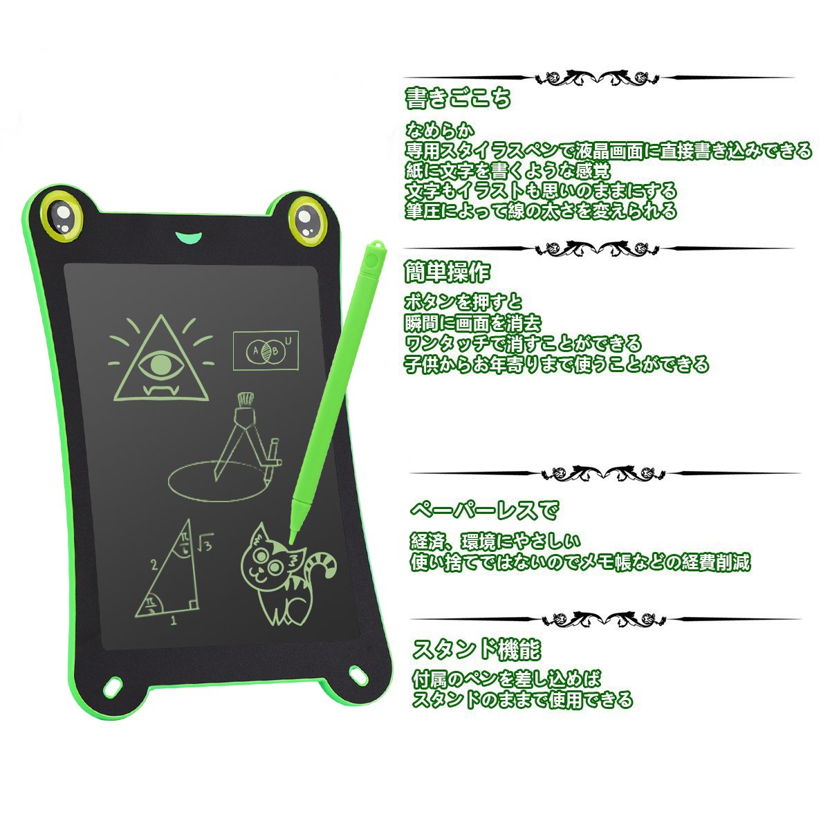 Simple electronic memo pad does not garbage, does not contaminate hands and sleeves, does not run out of ink, does not smell, so children can enjoy it.