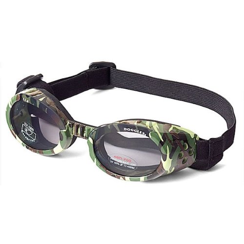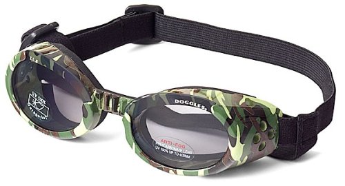 Studio : Doggles Publisher : Doggles Binding : Misc. Product Description DGILXS-10 Size-See Chart Below: Extra Small Features: -Dog Lenses. -Color: Green camo. -Available in Extra Small, Medium and Large sizes. -Extra wide nose bridge. -Deep lens cup. -Padded and flexible rubber frame. -Soft elastic adjustable head and chin straps. -100pct UV protection. -Anti-fog. -Shatterproof. -Elastic adjustable straps-head and chin. -Foam lines frame for extra comfort. -Extra deep lens cup keeps the lenses away from the eyes. Specifications: -Extra Small dimensions: 3.25' H x 1' W x 1' D. -Small dimensions: 4.5' H x 1.25' W x 1.25' D. -Medium dimensions: 5.5' H x 1.5' W x 1.5' D. -Large dimensions: 6' H x 1.5' W x 2' D. Measure Dog to Find the Perfect Fit