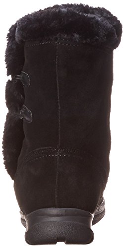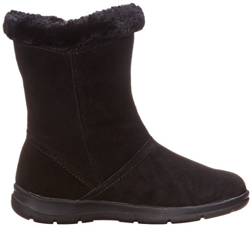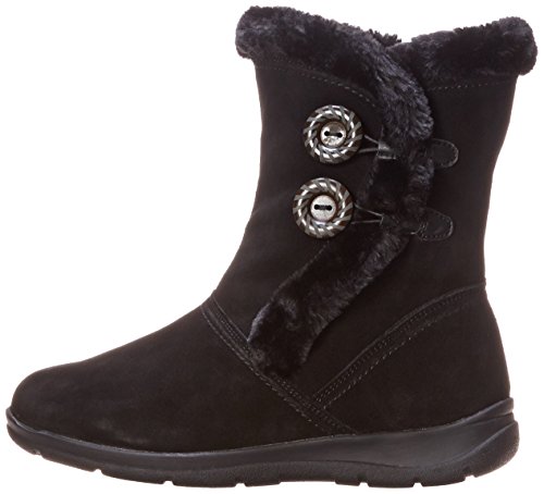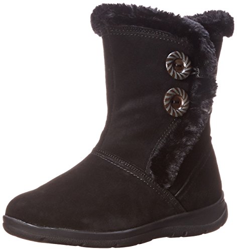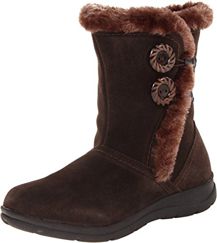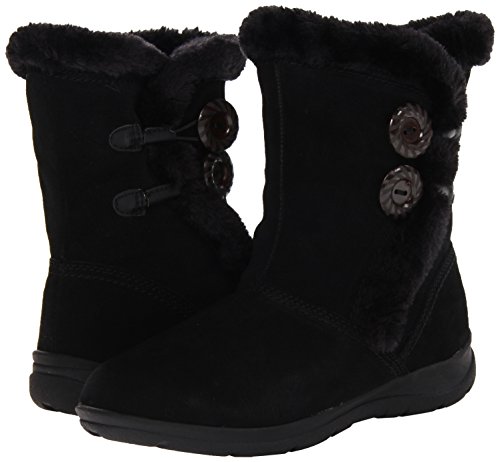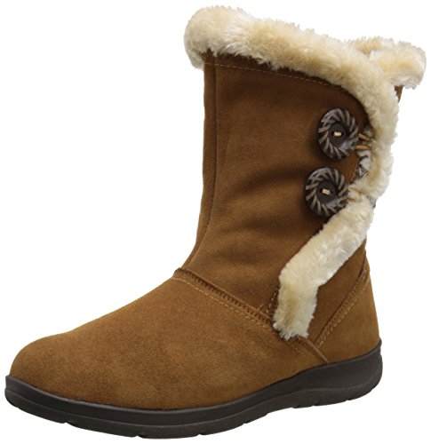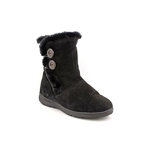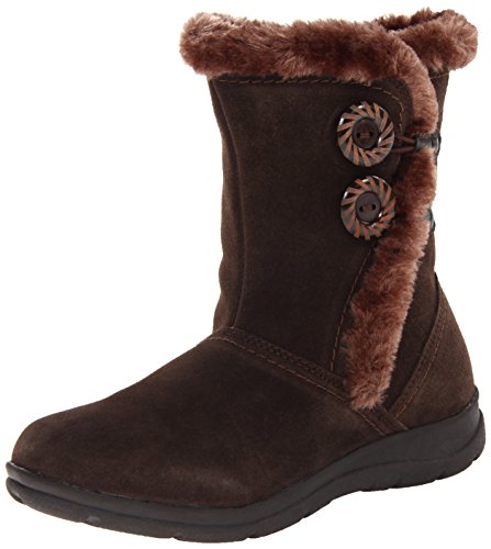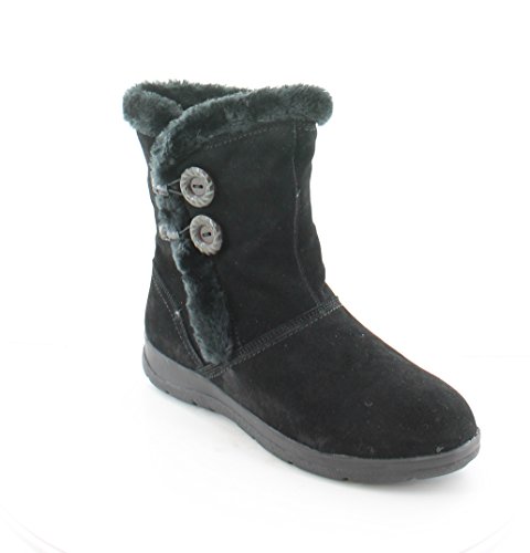 White mountain trip suede bootie is fur lined for warmth and comfort. The flexible treaded bottom will give you traction. Toggle button closure adds accent and makes it easier to get on and off.Feature