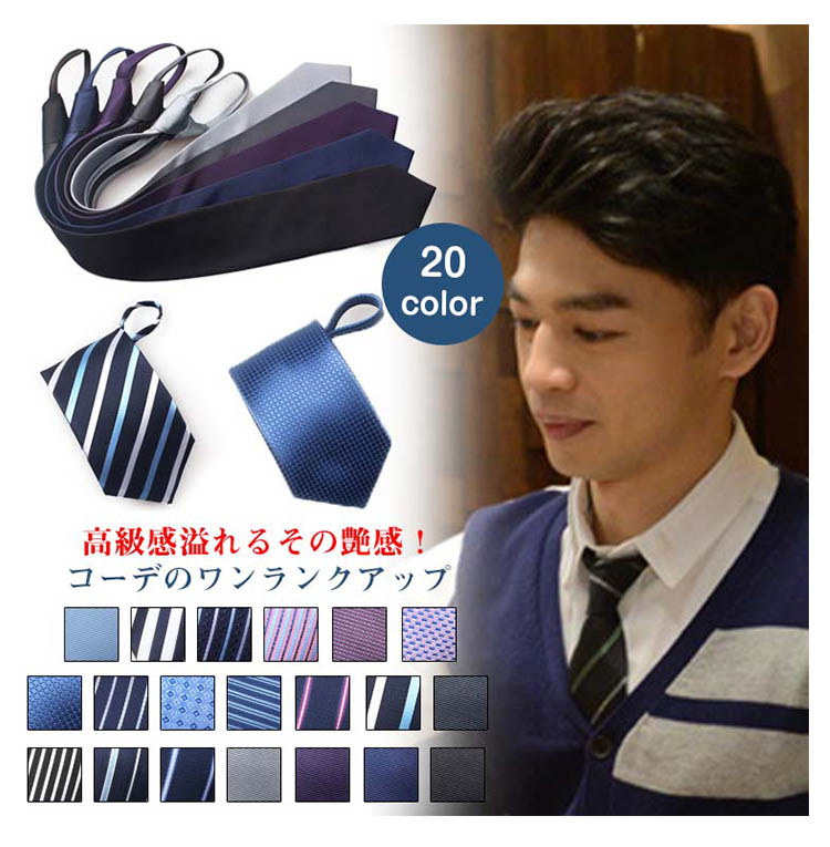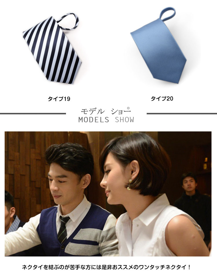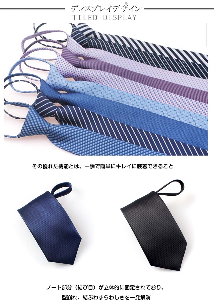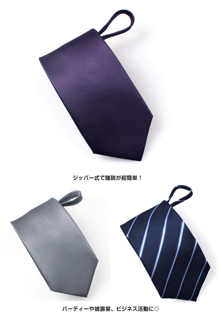 | 高級感溢れるその艶感!コーデのワンランクアップネクタイを結ぶのが苦手な方には是非おススメのワンタッチネクタイ!その優れた機能とは、一瞬で簡単にキレイに装着できることノート部分(結び目)が立体的に固定されており、型崩れ、結ぶわずらわしさを一発解消ジッパー式で離脱が超簡単!パーディーや披露宴、ビジネス活動に◎ | |