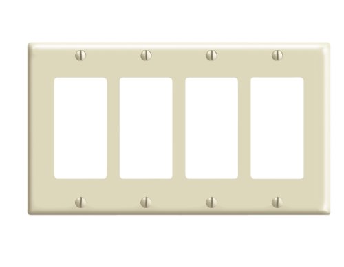 Leviton 80412-I 4-Gang Decora/GFCI Device Decora Wallplate, Standard Size, Thermoset, Device Mount, Ivory