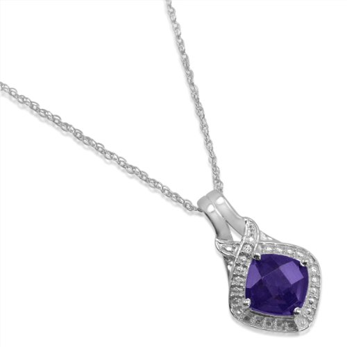- Title : Amethyst and Diamond Pendant-Necklace in Sterling Silver 18in. Chain (1 3/4ct tgw)