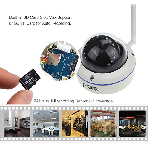HD 720P Wireless IP Camera with SD Card Slot for Home Security Auto Recording, Dome Style, One-Key Wi-Fi Setting