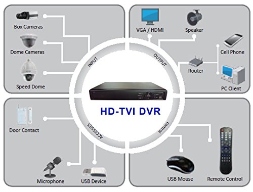 Digital Surveillance Recorder 4-Channel HD-TVI 1080p H.264 True-HD DVR with Pre-Installed 1TB Hard Drive Playback Internet & Mobile Phone Accessible HDMI TVI/Analog/IP Smart Recording Real Time for CCTV Camera Home Office Security System Network (Only wor