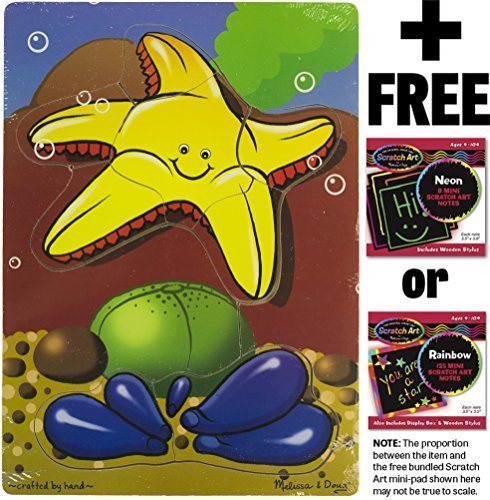 -. Binding : Toy -. Brand : Melissa & Doug -. EAN : 9899999530534 -. Feature : ONE FREE Melissa & Doug Scratch Art Mini-Pad is bundled with this item. The style of the mini-pad you receive is randomly picked. The Scratch Art Mini-Pad is considered a FREE bundled item. If you return this item, please return it as well. / Another great toy from Melissa & Doug for early childhood. / Easy to play puzzle of sea creature(s) / The puzzle pieces are cut-out shape of the sea creature(s) / For ages 3+. -. Label : Melissa & Doug -. Manufacturer : Melissa & Doug -. Model : 1163 -. MPN : BCC9M0M4 -. PackageQuantity : 1 -. PartNumber : BCC9M0M4 -. ProductGroup : Toy -. ProductTypeName : TOYS_AND_GAMES -. Publisher : Melissa & Doug -. Studio : Melissa & Doug -. Title : Starfish: Wooden Puzzle + FREE Melissa & Doug Scratch Art Mini-Pad Bundle [11631]