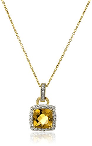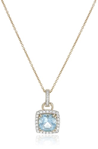 Sterling Silver Yellow Gold Plated March Birthstone Simulated Aquamarine and Created White Sapphire Pendant Necklace, 18"
