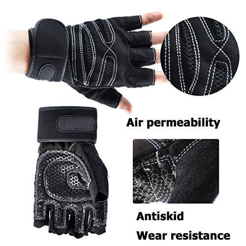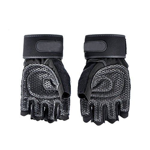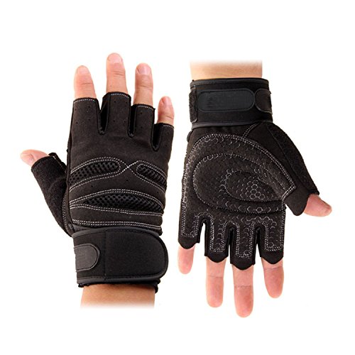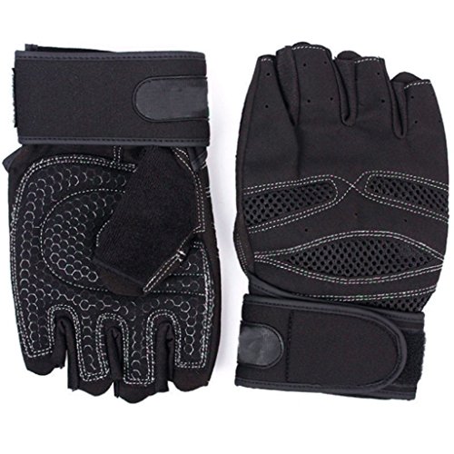 -. Feature : Package Includes: One pair of Training Fitness Exercise Gloves / Etched synthetic leather palm glove will meet all your needs for your cross-training workouts / Ergonomic padded palm with pressure points provides a superior grip and lessens hand fatigue / Suitable for driving, barbell, dumbbell, rowing, weightlifting, tug-of-war, and various kinds of sports fitness. / Pull loops make the gloves easy to get on and get started and finger pull tabs make these gloves easy to remove at the end of that strenuous workout.