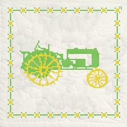 Bulk Buy: Fairway Needle Craft Stamped Quilt Blocks 18in. x 18in. 6/Pkg Green Tractor (2-Pack)