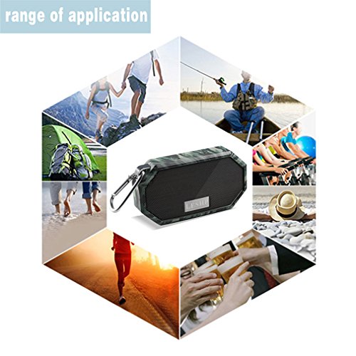 -. Feature : Rated IP66 Level: Great for Outdoors and Shower,Large area of Sealed Silicone Cover Design ensures great Splashproof, Shockproof and Dustproof function, so it can be used under harsh environment. / It has built-in MIC Bluetooth speaker and hands-free function, so you can conveniently pick up a call by this mini speaker in car, bathroom, at home or office, anywhere during it is connected to your Smartphone. / Long Playtime, Fast Recharge: supports up to 6 hours playing time at the volume to 70% of the maximum volume. Recharge only needs 2 hours. / Snap Hook: Portable and suitable features for LESHP shower speaker guarantee better user experience when playing music in shower/outdoor. / Advanced Bluetooth Technology: Connect your device very fast, consume less energy and deliver crystal clear sound.