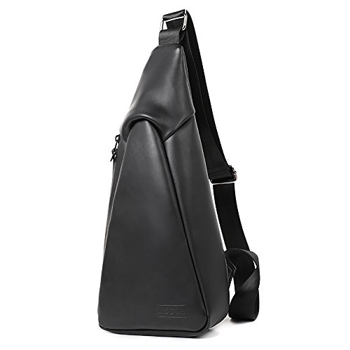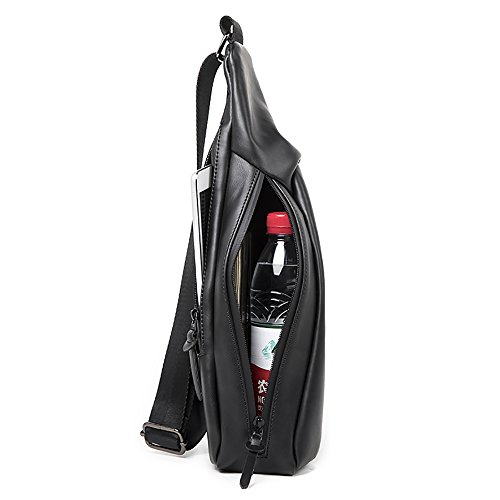 -. Title : MUZOR Lightweight Synthetic Leather 8 Inches Shoulder Chest Bag Sport Gym Fanny Pack Rover Sling Unbalance Backpack With YKK Zips Black