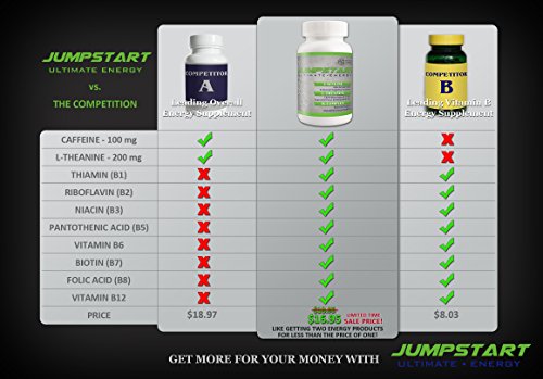 Jumpstart Ultimate Energy Supplement Caffeine + L-Theanine + Vitamin B Complex, Guaranteed Energy Boost without Jitters/Crash, Enhanced...