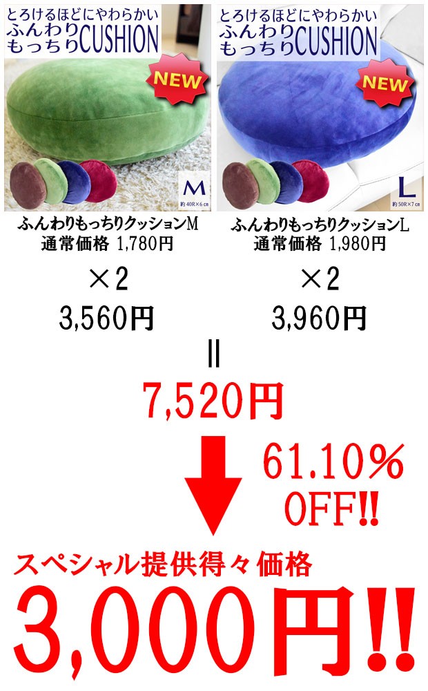 ◆サイズ:ふんわりもっちりクッションM 約40R×6cm