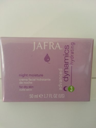 -. Binding : Misc. -. Brand : Jafra -. EAN : 0098000155400 -. Feature : Apply a dime-sized portion every night after cleansing and toning. Smooth over face and throat, it will quickly absorb into the skin, leaving it supple and hydrated throughout the day. -. Label : Jafra -. Manufacturer : Jafra -. MPN : na -. PackageQuantity : 1 -. PartNumber : na -. ProductGroup : Beauty -. ProductTypeName : BEAUTY -. Publisher : Jafra -. Studio : Jafra -. Title : Jafra Advanced Dynamics Hydrating Night Moisture -. UPC : 098000155400
