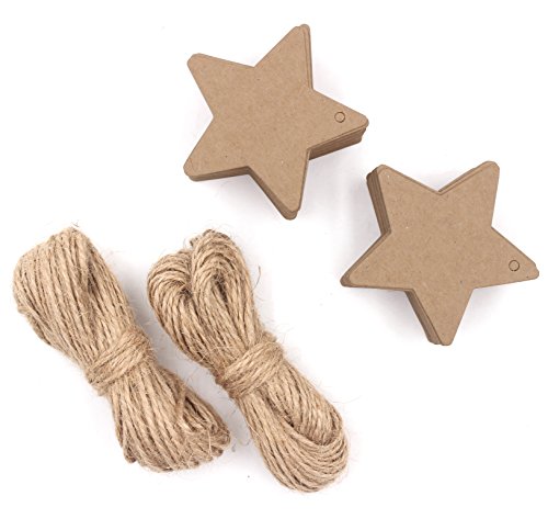 Zicome 150 Piece Kraft Paper Gift Tags with 100 Feet Natural Jute Twine, Star Shaped
