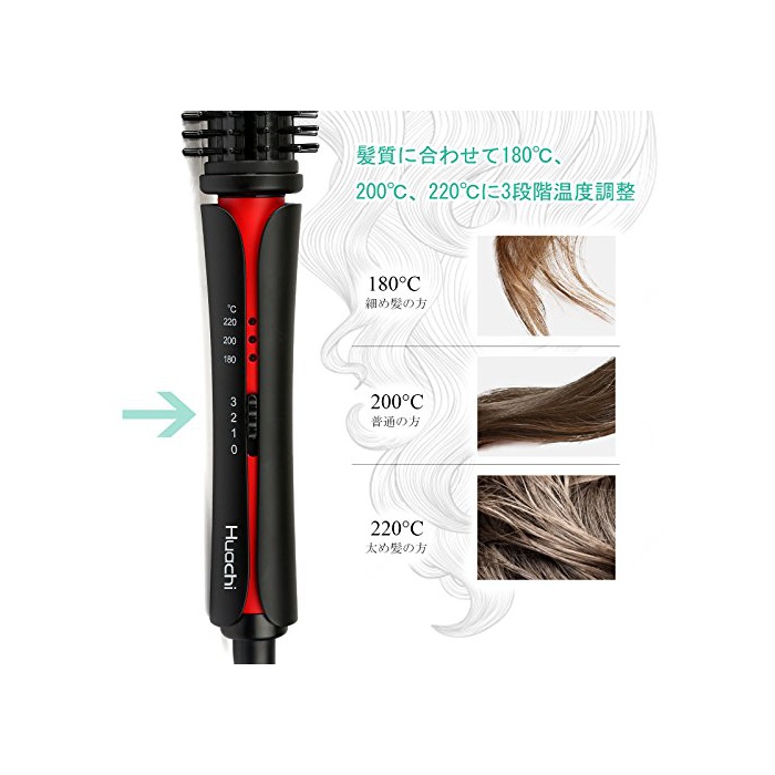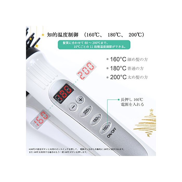 「이온 세라믹 플레이트」고품질 세라믹 플레이트부터 마이너스 이온을 방출!머리의 수분 증발을 경감하고, 데미지를 최소한으로.윤택하면 요염함을 줍니다.설정 온도는 80℃~프로 사양의 200℃까지,자신의 발질 에 따라 다이얼에 세세한 온도 조정이 가능.