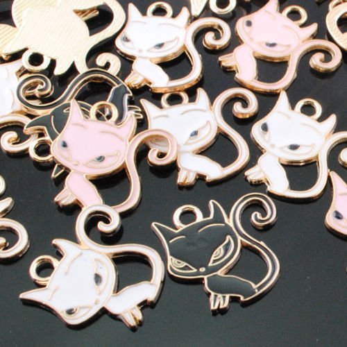 48pcs Cate Cat Emanel Pendant Bracelet Charm Beads Findings Alloy Mix Lots (Multi-color)